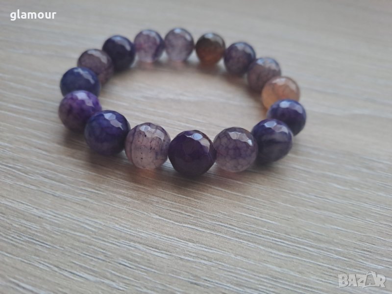 Гривна с фасетирани мъниста /лилави/ахати-драконови вени.Размер М.