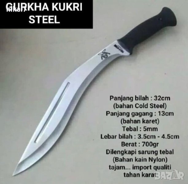 кукри от 440 хромирана неръждаема стомана, т.е. от острието до стеблото, се формира от едно парче лята стомана, което дава по-голяма здравина и стабилност. Дръжката е направена от предварително оформена гума за по-здраво и стабилно захващане, с отвор в опашката за поставяне на каишка за китка (не е доставена). Kukri е снабден с калъф за острието от издръжлив плат с халка за колан, а острието е много остро, така че може да се използва за рязане на бастуни или клони, така че е от съществено значение за всички горски и езерни дейности като лов или риболов, но за отличното качество на фактурата е ценно парче, което да добавите към вашата колекция. Произведено от Cold Steel.