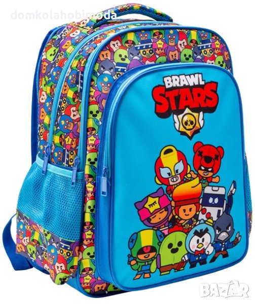 Описание - Характеристики Ученическа раница, с дизайн на Brawl Stars, с голямо отделение, 2 джоба с цип и странични мрежести джобове. Има издръжливи ципове, мек гръб и регулируеми презрамки.