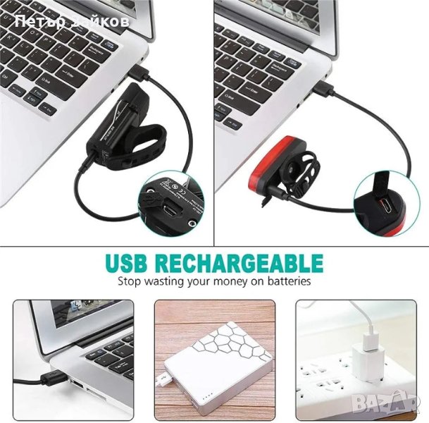 USB Водоустойчив комплект Предна велосипедна светлина Акумулаторна велосипедна