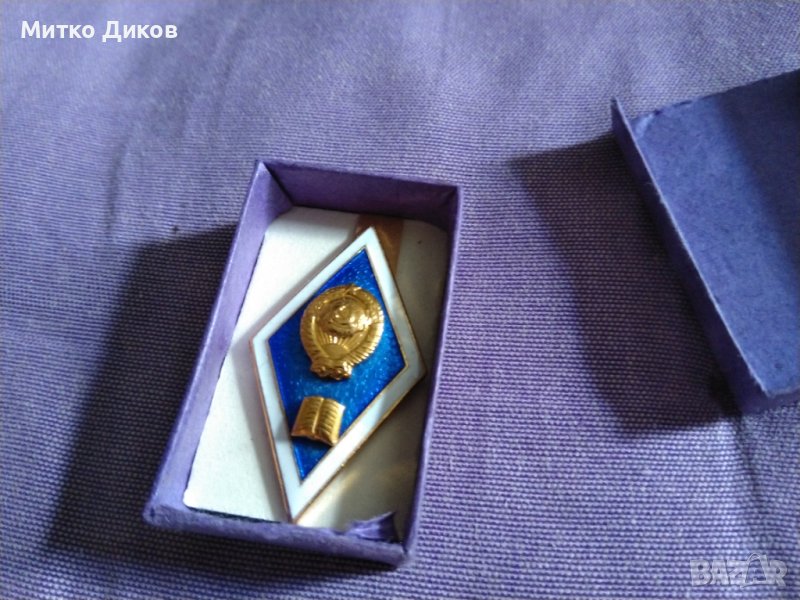 Ромб нагръден знак от соца нов на завършил хуманитарен ВУЗ в СССР нов с кутия → Обява 41773224