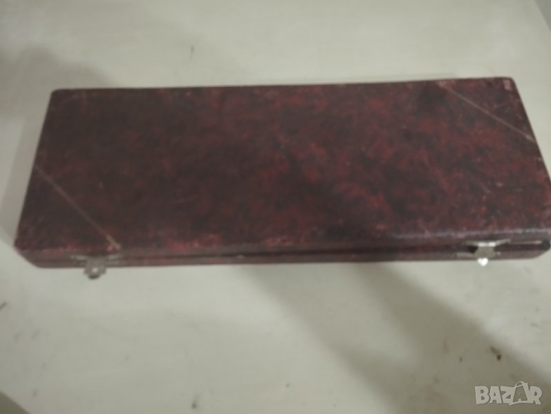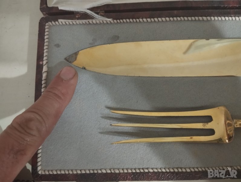 прибори за сервиране-комплект.Посребрени дръжки,позлатено острие.Забележки с