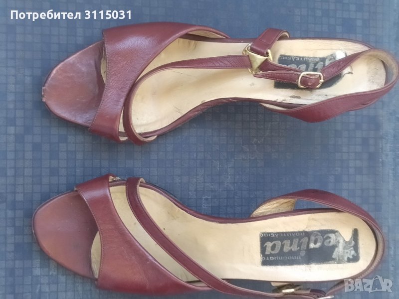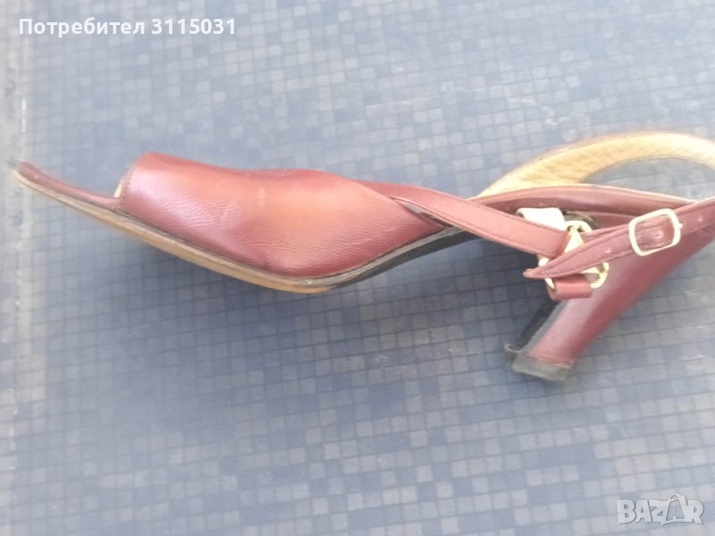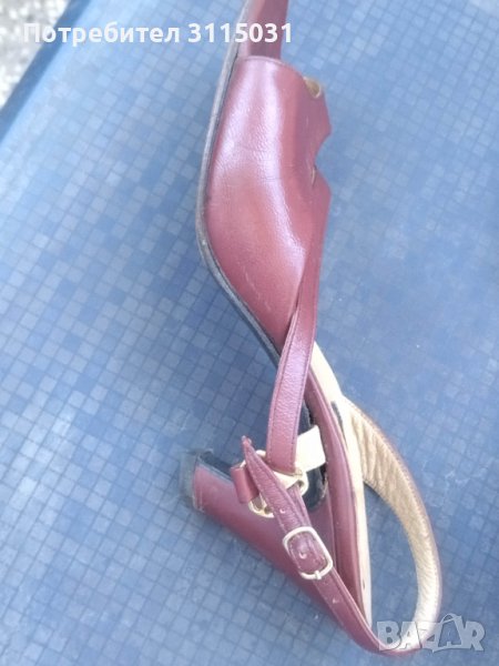 Дамски гръцки сандал от естествена кожа във вишнев цвят № 39.Височината на тока 7 см.