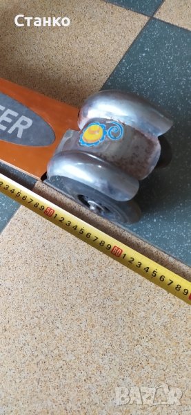 Много запазена тротинетка, оригинална на марката "Scooter . Колелата светещи и също са запазени без протрито или износване. Със двойно задно колело, не със двойно предно - което го прави по-стабилен и маневрен.