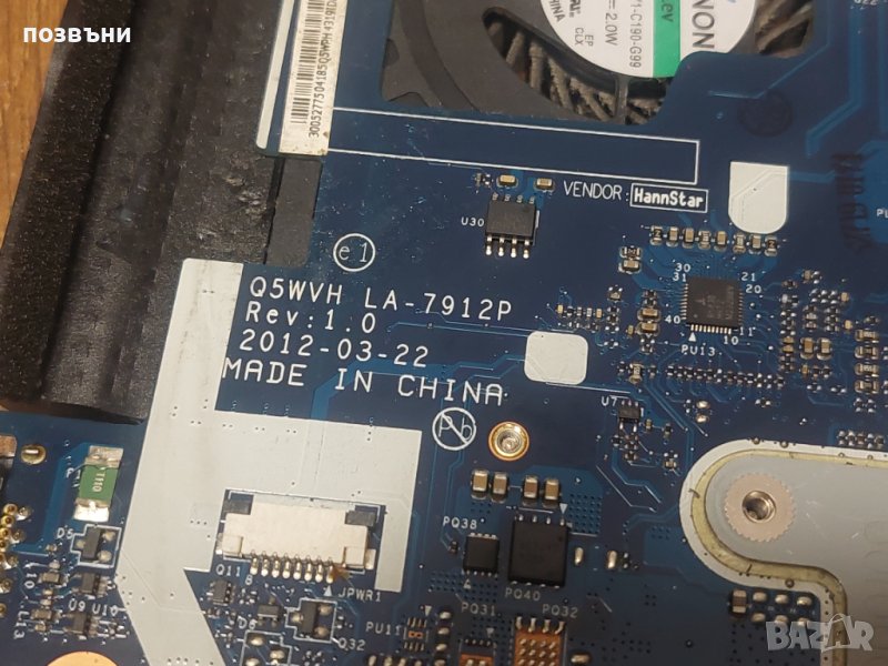 Продава се на части. Дъното се включва и се изключва след 4-5 секунди (не са правени опити за ремонт) LA-7912P. Процесор intel pentium b960. Клавиатурата не работи (продават се бутоните отделно).