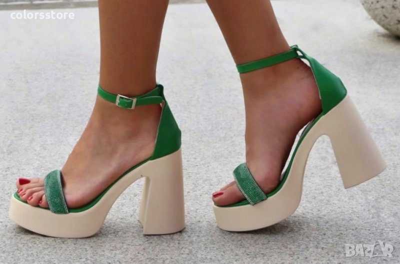 Сандали на ток - зелена кожа - DT370 → Обява 41784401