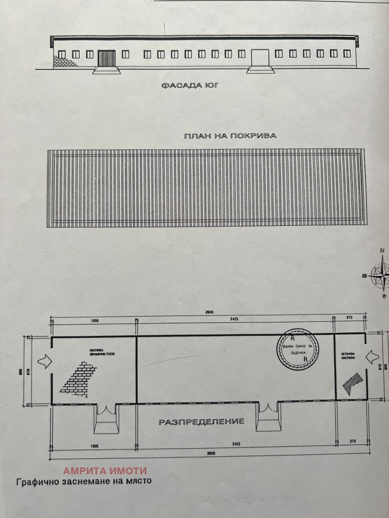 Амрита Имоти Ви предлага промишлена сграда/цех в с. Стояновци с площ 335кв.м. Към основната постройка има допълнително административна сграда със застроена площ 56.58 кв.м ,както и изграден травопост.