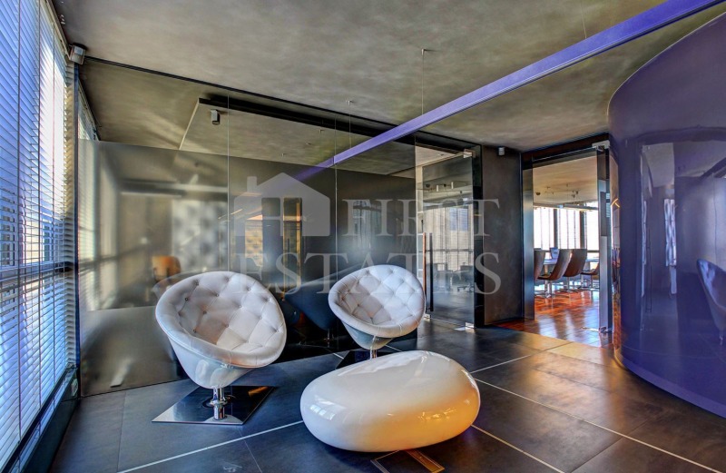 Разполага с 2 броя преддверие, рецепция с кабинет за секретарка, 2 заседателни зали, 5 отделни кабинета, 1 баня, 3 тоалетни, кухненски бокс, помещение за сървър, открита тераса с фантастична панорамна гледка към Витоша.