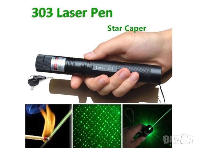 лазер/пойнтер с проекция + приставка за светлинно шоу с променящи се фигури! С дължина на вълната 532nm.