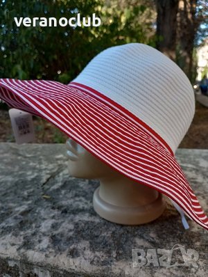 Ново лятно предложение за дамите - бяла капела със синьо-зелена периферия.