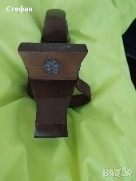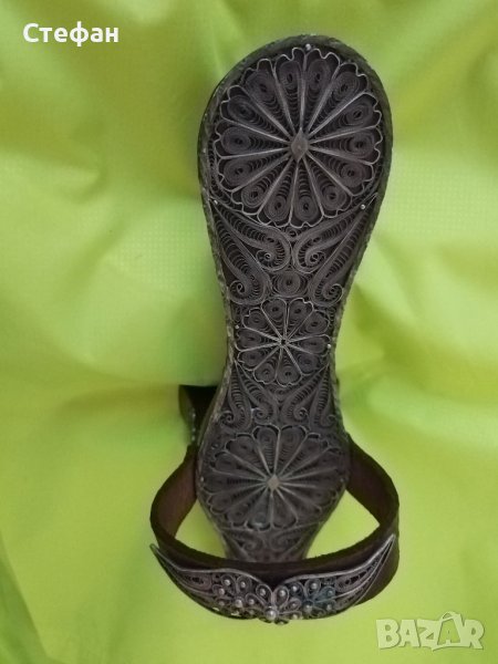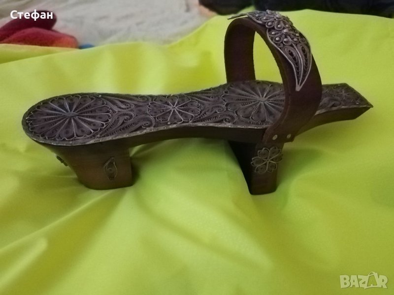 Обувката е от турско време.Много е запазена,изработена е от специално дърво и е със сребърен,филигранов обков.голяма е 25см.