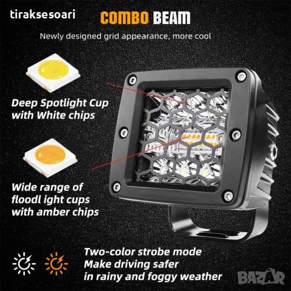 Комплект от 2 броя Лед LED Халогени Аварийни Лампи Бяла + Оранжева Светлина • 12-24V Dual Combo Light Двойна Светлина