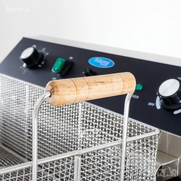 С трифазен ток и вградена защита от претоварване, той осигурява сигурност при работа. Студената зона в долната част на фритюрника позволява многократно използване на маслото без да се промени вкуса на храната.