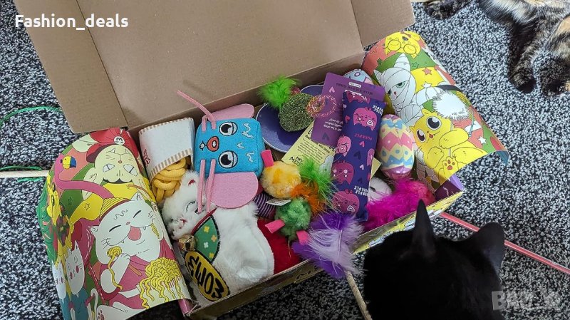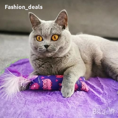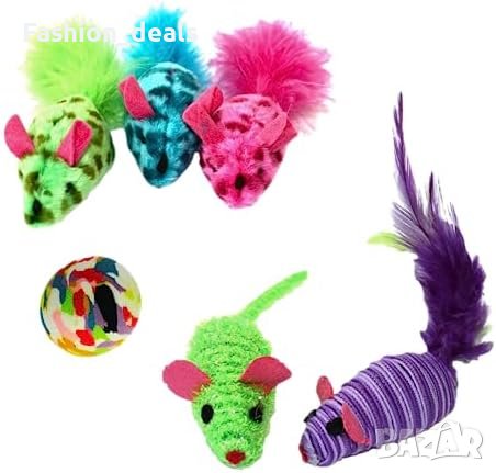 Включва играчки с котешка мента, играчки с пера и плюшени играчки