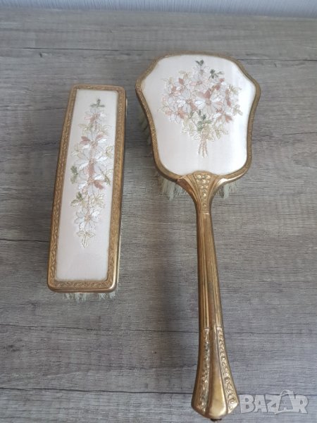 Четките са запазени,гърбовете им са ръчно бродирани ,дръжките и рамките са метални,много запазени за времето си.Дължина на четката за коса 27 см,дължина на четката за дрехи 16 см.Четките могат да се смъкват и измият