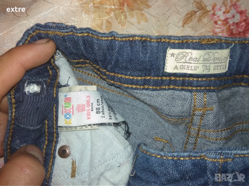 Детски дънкови панталонки нови от Испания 86см, миналата година бяхме около 108 см и ни бяга големи, тази година сме 113 и сега за лятото каза, че и стягат, така че даже не са носени само пробвани.