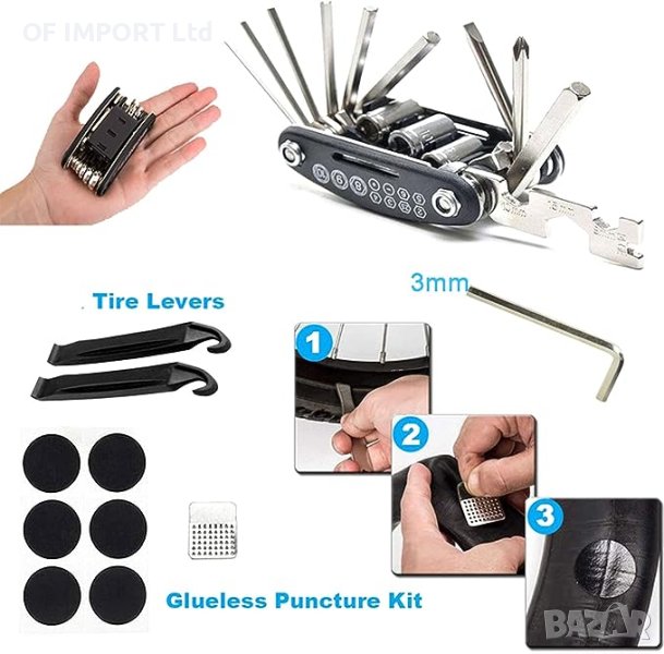 - [Части за ремонт на велосипеди] Многофункционален инструмент за ремонт на велосипеди, найлонова лъжица за гуми, кръгло лепило за ремонт на гуми, документ за ремонт на гуми, черна найлонова чанта (може да се окачи на кръста или колана) Може да реши повечето проблеми с велосипеди, операцията е проста и вие не Не е нужно да се тревожите за внезапни прекъсвания на пътя.