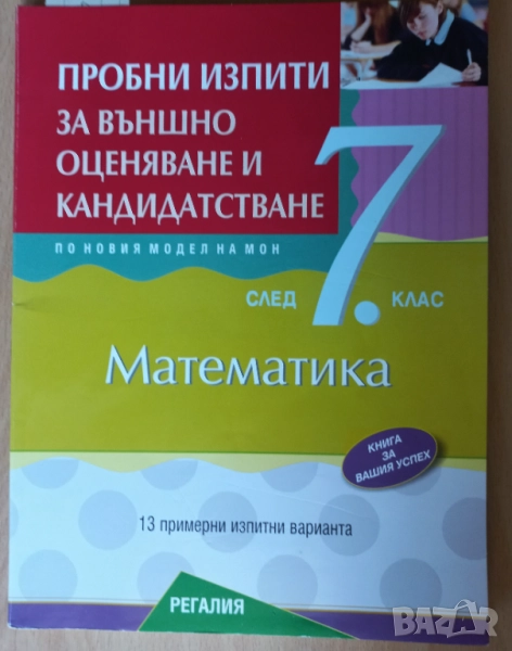2. Пробни изпити по математика за външно оценяване и кандидатстване, НВО, изд.Регалия, работено с химикал от 5 до 10стр. вкл., може да се забели, цената в момента е 16,00лв., предлагам я за 8лв.