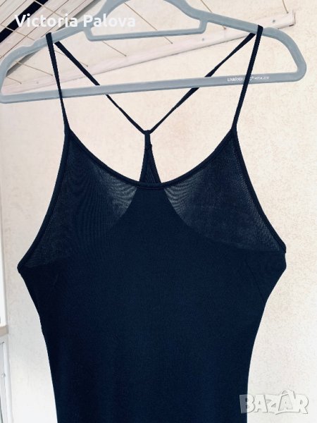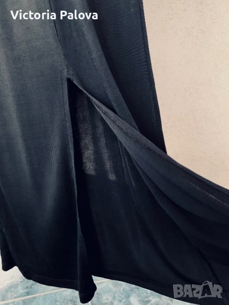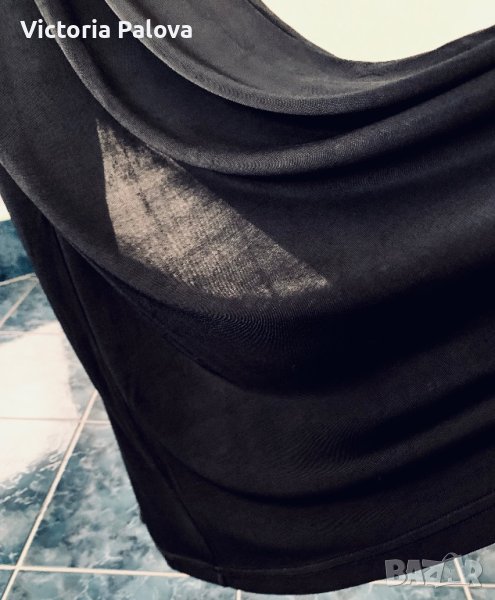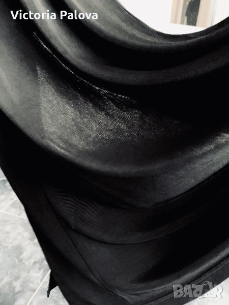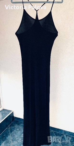 Спортно-елегантна рокля от студена материя, има разтегливост със стягащ ефект, в резултат на което роклята скрива всякакви неравности по тялото.Много интересно е разположението на презрамки, а отзад е висок шлиц ( цепка) - 45см.ГО - 40см в неразтегнат вид, дължина - 150см.