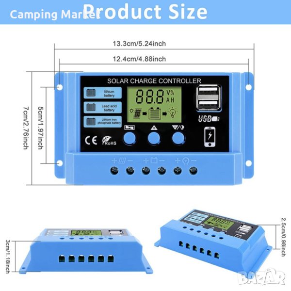 Този контролер е интелигентен, многофункционален за зареждане и разреждане. В този продукт се използва фиксиран LCD дисплей с много приятелски интерфейс; различни контролни параметри могат да бъдат гъвкаво зададени(по желание може ръчно задаване на минималния и максималния волтаж на батерията) , напълно отговарящи на вашите различни изисквания за приложение.