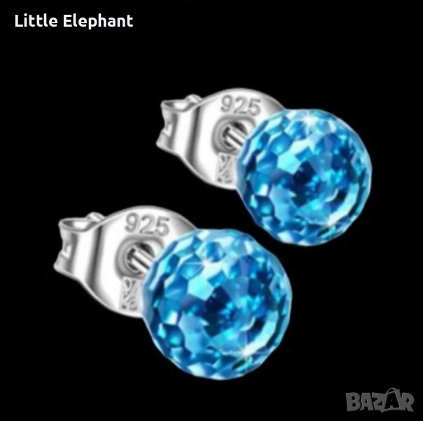 Сребърни обеци кристали топчета,basic,blue/нови → Обява 41800630