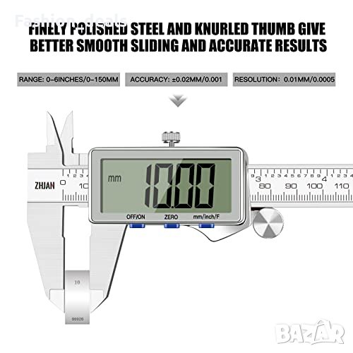 Точност и прецизност: Диапазон на измерване: 0-150мм; Точност: ± 0.02мм; Резолюция: 0.01мм.