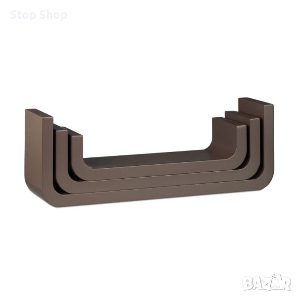 С този комплект от 3 рафта можете да поставите декоративни елементи или семейни снимки в светлината на прожекторите. Комплектът от 3 части за подправки, чаши и чаши е идеален и в кухнята. Модерният дизайн с ретро вид е особено декоративен. Извитите страни образуват U-образна форма. Изберете подходящия цвят за вашия дом. Решете между прости, едноцветни стенни рафтове или двуцветни привличащи вниманието. Плаващите рафтове са стабилни и могат да издържат много за малкия си размер.