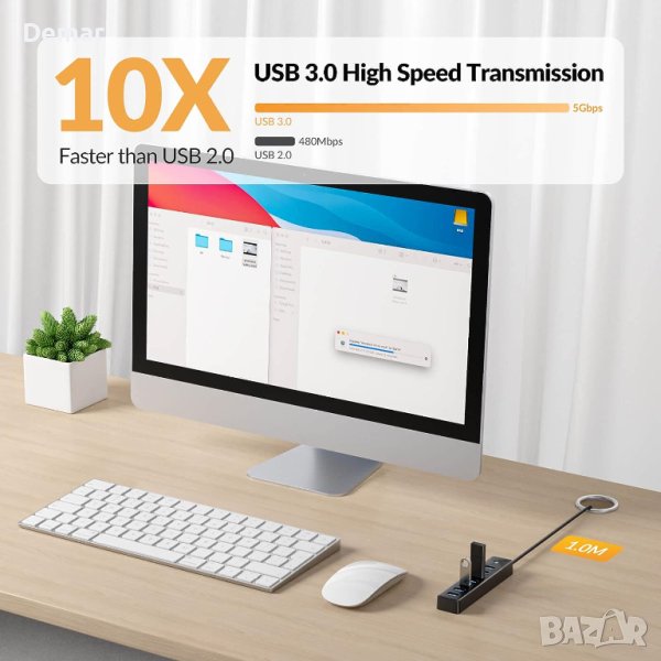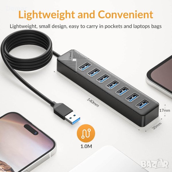 GiGimundo 7-портов USB хъб 3.0, 1M кабел с допълнителни 5V/3A