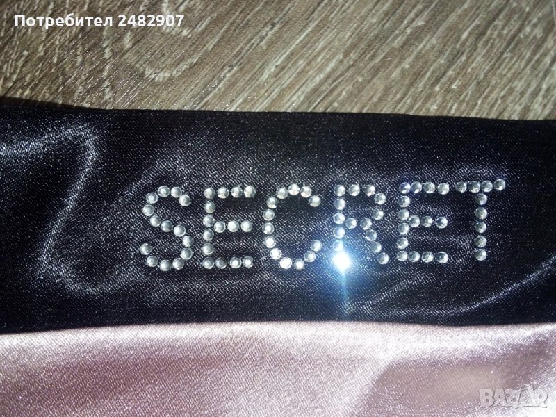 Съдържа 100 % полиестер, с регулируеми презрамки, черни кантове и блестящи малки камъчета.