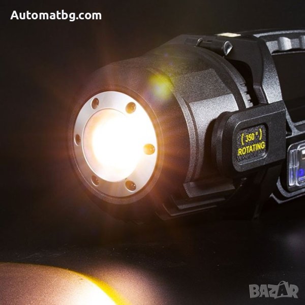 Въртяща се глава на 350 градуса и удобна дръжка за носене.