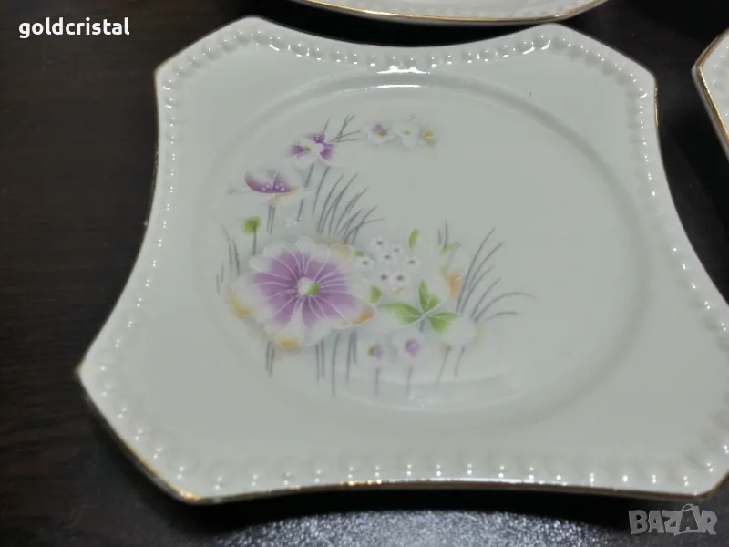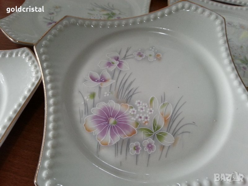 Стар български порцелан Изида чинии чинийки 6 бр и едно плато златен кант без забележки сервиз комплект сет лот ретро арт декор винтидж колекция стари антикварни предмети обзавеждане за дома и семейството подходящи за подарък за ценители и колекционери