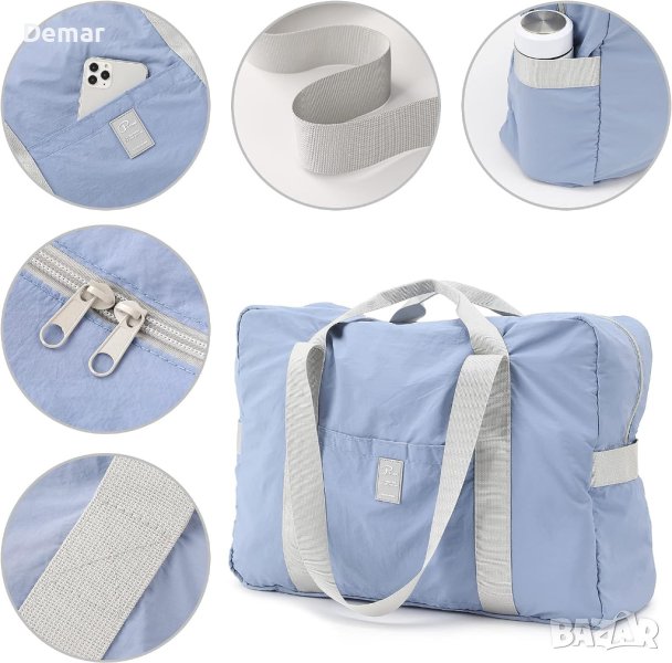 Сгъваемата пътна чанта VanFn е изработена от устойчив на дъжд найлонов плат с вътрешна подплата от кадифе от кожа на праскова, с издръжливи шевове и ъглови шевове. Мек, устойчив на разкъсване и дъжд, той е лесен за носене благодарение на компактния си дизайн, който се сгъва до 4" x 11" (10 x 28 cm). Тази лека чанта е идеална за пътуване и може да се опакова удобно. Предлага достатъчно пространство с основното си отделение, вътрешните торбички, предния джоб и страничните джобове за бутилки с вода. Мултифункционалният дизайн го прави подходящ за кратки пътувания, ваканции и различни дейности. Неговият отворен отзад ръкав ви позволява да го плъзнете върху дръжката на куфар за лесно транспортиране. Отличен подарък за приятели и семейство.