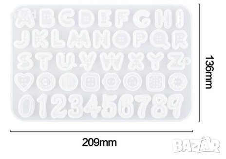 Азбука букви латиница тип копчета числа цифри силиконов молд форма фондан смола декор → Обява 41809879