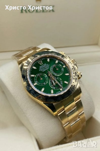24 months warranty!!!Top quality!РАБОТИМ С ПОРЪЧКИ ЗА ВСЯКАКВИ МАРКИ И МОДЕЛИЦЯЛАТА ГАМА НА ROLEX!!!В комплекта се включва оригинална кутия, подаръчен плик, документи и гаранционна карта.Каса 40 мм.Сапфир кристал стъкло.Автоматичен механизъм.Отклонение +/-2 секунди на ден72 часа power reserve.12 часа хронограф.Цената на оригинала е 90 000 $.