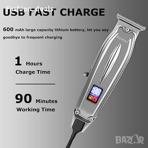 KEMEI 426 е предназначен за професионално подстригване и включва 1 тример, 4 направляващи гребена, 1 четка за почистване, 1 USB кабел и 1 гребен.