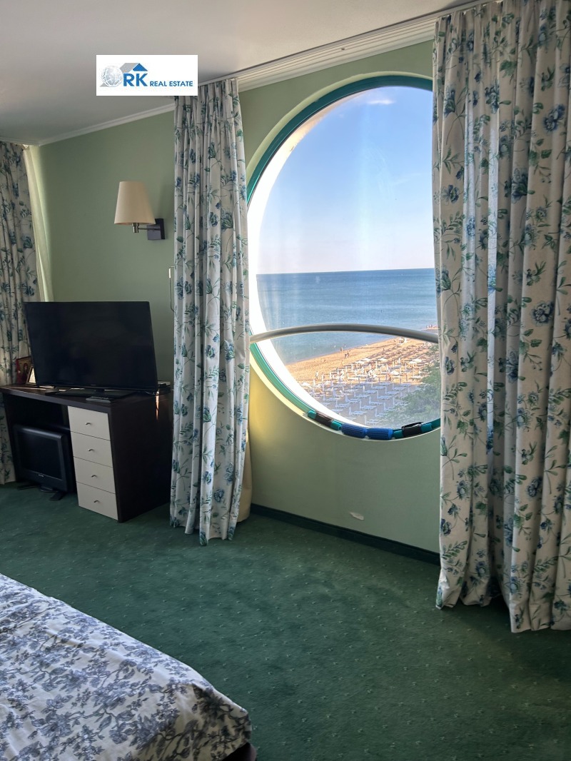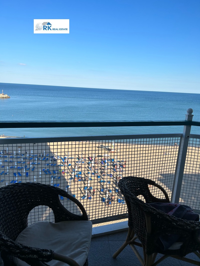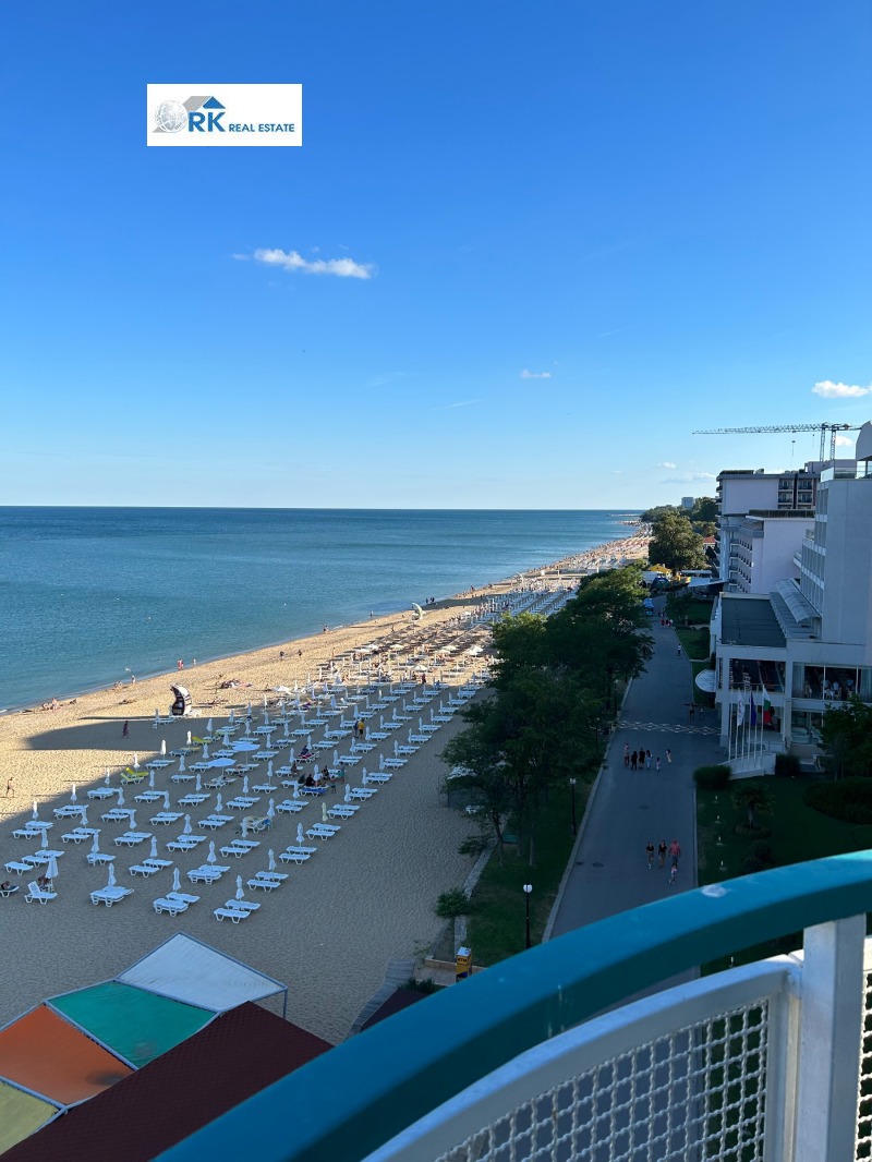 Сграда: деветажна тухлена сграда с Разрешение за ползване (АКТ16) от 2009 година. Оборудвана с асансьор. Перфектно добре поддържани общи части и много приятни съседи. Първа линия 'море'. Жилището се предлага обзаведено. Страхотна морска панорама. Чудесното му юго-източно изложение го прави много топло и уютно. Разпределение: Имотът се състои от входно антре, двата дневни тракта с кухненски бокс, спалня, баня-тоалет, втора спалня, втора баня с тоалетна и четири тераси с гледка към морето.Сградата се намира на много комуникативно и тихо място от шум и музика на самият морския бряг,За контакти +359888425554 Алексей
