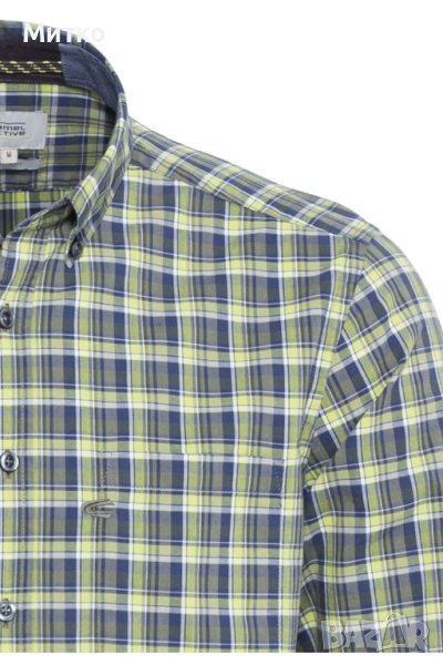 Мъжка риза, синьо-зелено каре Camel Active. Яката е с копчета. Има един джоб на гърдите с бродирано лого. Изработена от 100% памук, нормална кройка.