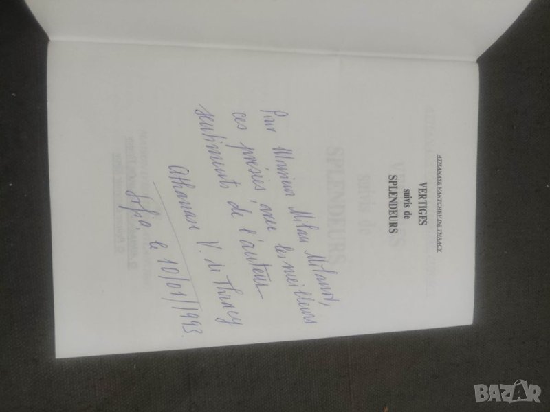 Продавам книга "Vertiges suivis de splendeurs Athanase Vantchev de Thracy → Обява 41811895