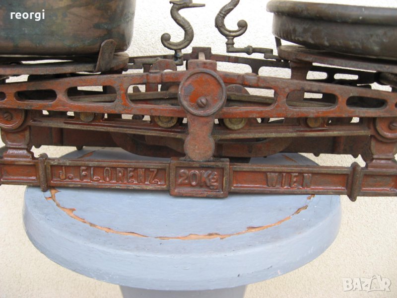 Антична настолна везна --от известното кафене--Флориан --Венеция. производство--1800г--в Австрия. от Джоузеф Флоренц.--месингови тави--изм. 20кг.