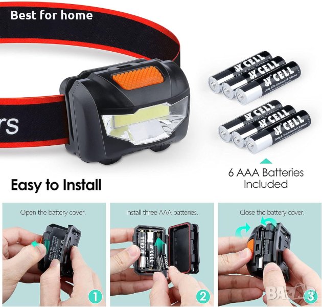 Различни приложения: Перфектен фар със свободни ръце за възрастни и деца за джогинг, колоездене, къмпинг, туризъм, ремонт на автомобили, работа „Направи си сам“ и други дълги нощни дейности. Това е незаменимо важно оборудване при дейности на открито. Пакетът включва 6 AAA батерии за по-добро изживяване.