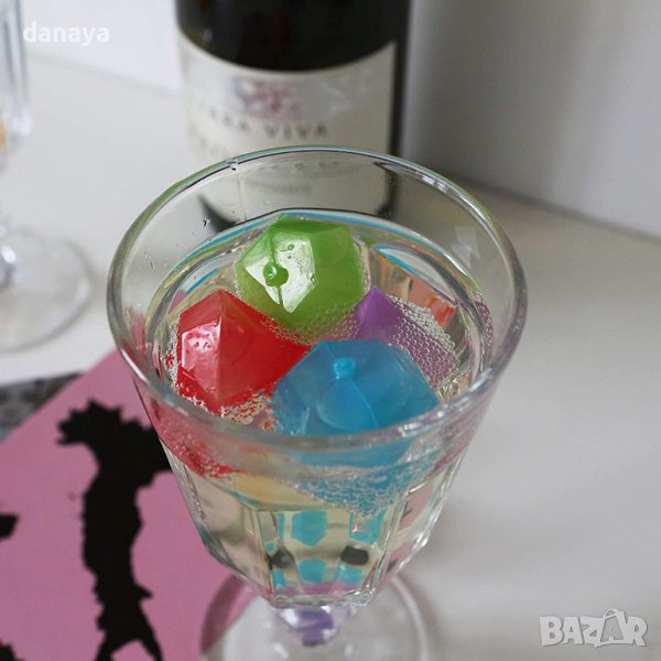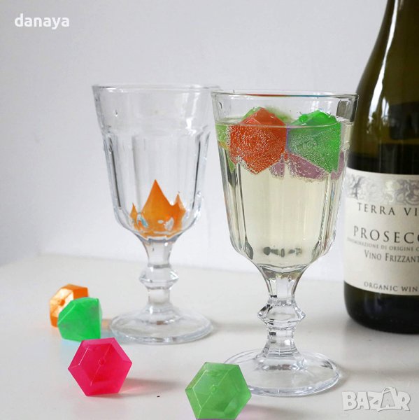Комплект от 20 броя цветни кубчета за лед във формата на диамант. Кубчетата са пластмасови и са подходящи за многoкратна употреба. Просто поставете във фризера, за да замръзнат. Не се топят, както истинското кубче лед и така напитката ви няма да се разрежда. Придават свеж цветен ефект в чашата и задържат питието студено.