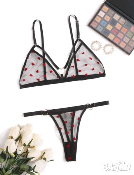 - Комплектът включва: прозрачен сутиен, секси прозрачни прашки