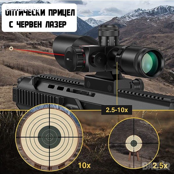 Този прицел ви предоставя увеличение от 2.5x до 10x, което осигурява ясен образ и прецизност дори на голямо разстояние. С диаметър на обектива 40 мм, получавате оптимално осветление и чисти изображения без изкривявания.