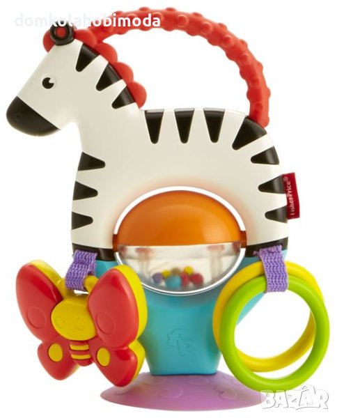 Активна зебра с вендуза, дрънкалка и топка. Изостря сетивата и задоволява любопитството на детето. секс Унисекс Комплект марка Fisher Price Препоръчителна възраст 3 месеца и повече Дължина x Ширина x Височина 13х6х18 см