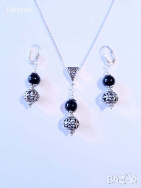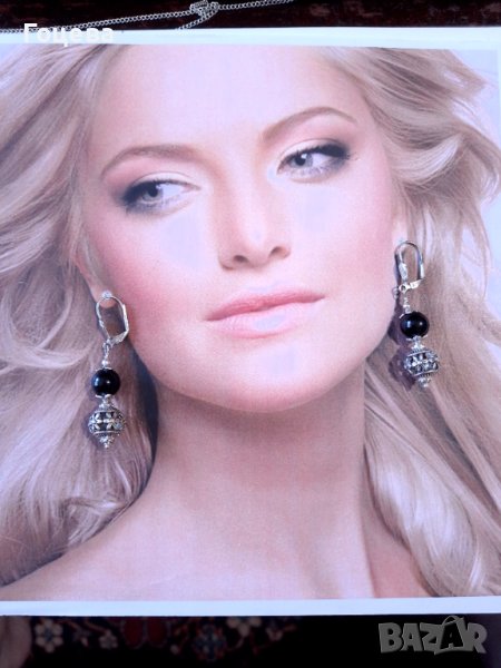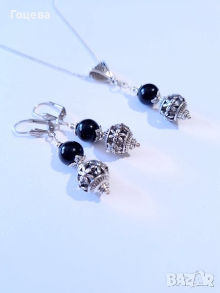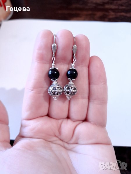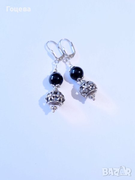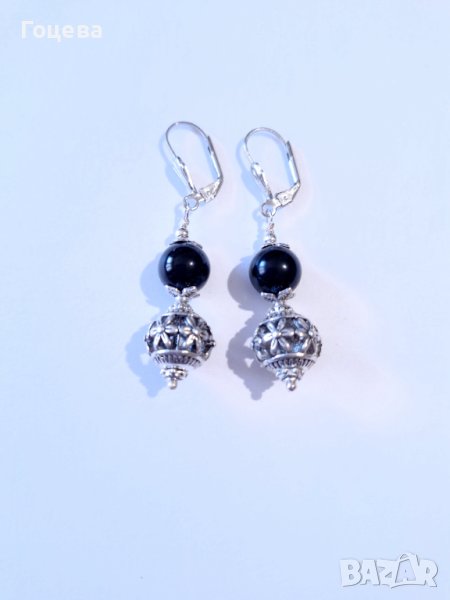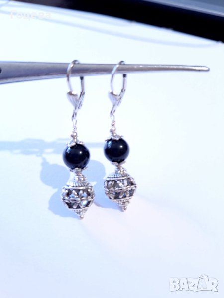 Разкошни обеци с камъни Черен диамант и фини филигранни орнаменти в цвят сребро → Обява 41819201