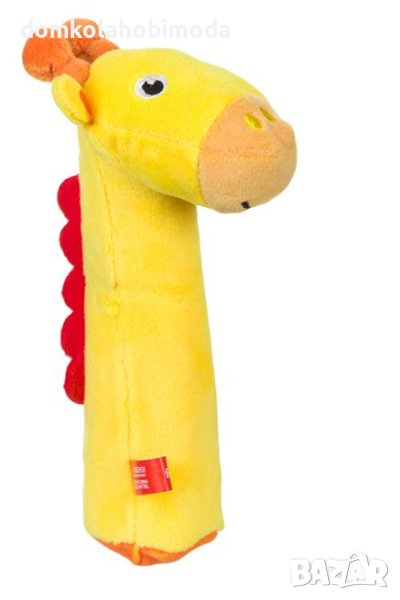 Описание - Характеристики Бебешка дрънкалка с дръжка за стискане, жълт жираф.