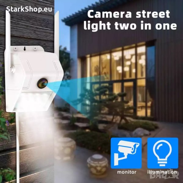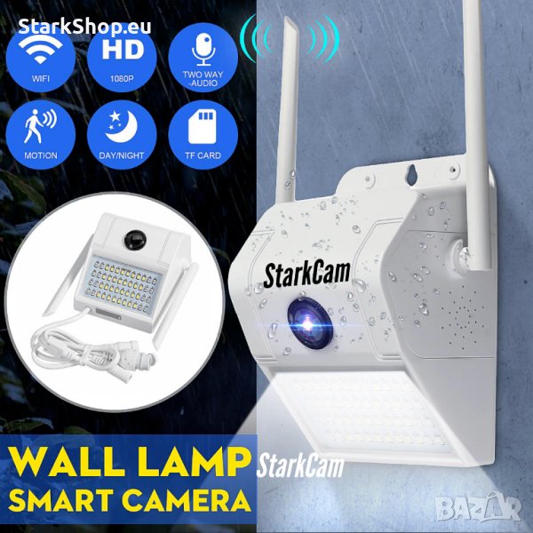 ТОП МОДЕЛ страхотна комбинация от градинска LED лампа с вградена качествена StarkCam WiFi FULLHD камера с двупосочно аудио и нощно виждане.
