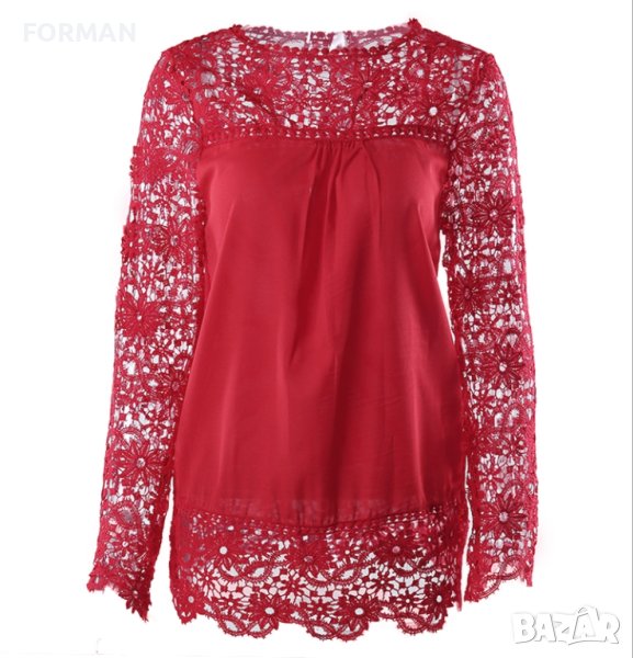 Риза/блуза с дантелени рамене и ръкави в БЯЛО и в ЧЕРВЕНО → Обява 41821632