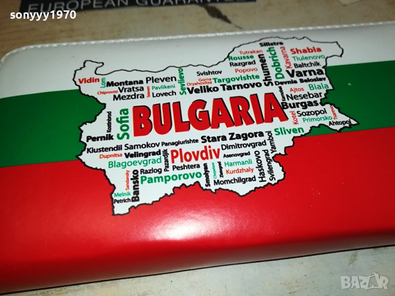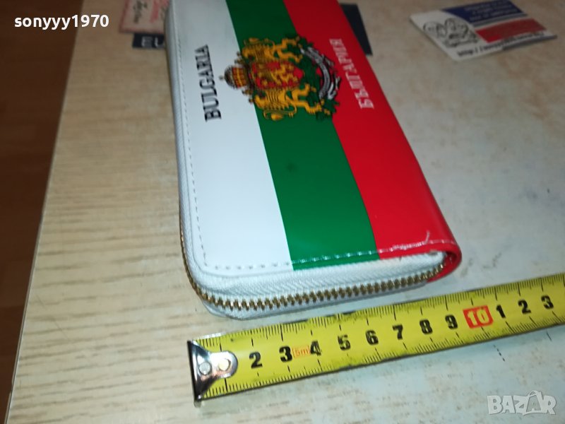 Сувенирно портмоне с цип, отделения за карти, отделение за монети с цип. Портмонето е в цветовете на знамето на страната, декорирано с картата на България и гербът. Размери: 10х19 см.КРАЙНИ ЦЕНИ.ПАЗАРЛЪЦИ НЕ! пращаме със спиди или еконт с преглед и тест след превод на капаро за куриерската услуга поради зачестили некоректни потребители-поръчки само тук в саита! по телефона и със смс не! краини цени! бартери не правиме! ПАРИ НЕ ВРЪЩАМЕ! всеки ден нови неща-още 2-3 наши обяви тук