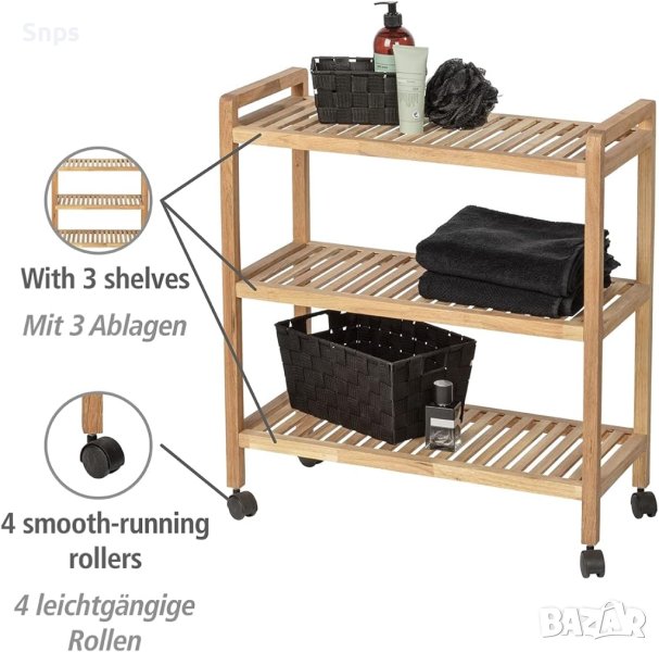 Норвежка количка за домакинство и баня, изработена от масивно орехово дърво, с 3 рафта и 4 колела